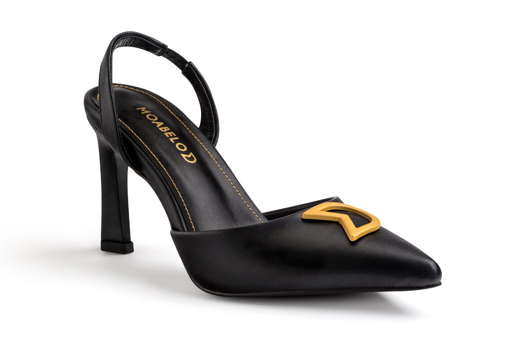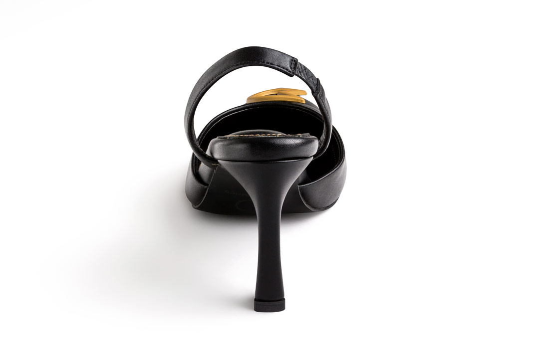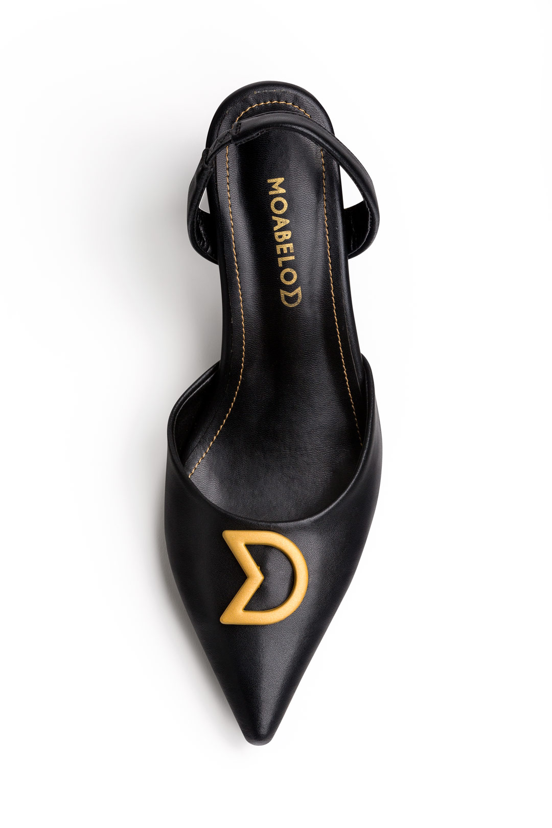 Hand crafted from leather.The Moabelo D sling back with a low cut pointed toe, is elevated by a flared 8,5cm heel, featuring a custom made Moabelo D steel buckle detail.